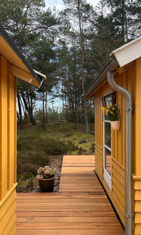 Midt i Bornholms rå landskab, hvor fyrretræer og havudsigt mødes i et stille samspil, ligger et lille gult sommerhus med to anneks bygninger, der bliver elegant forbundet af en smuk og funktionel træterrasse. Til projektet har ejerne valgt Tatajuba som terrassebrædder, og det brasilianske hårdttræ har vist sig som et perfekt match til den bornholmske natur, både når det kommer til æstetikken, men også i forhold til holdbarheden.