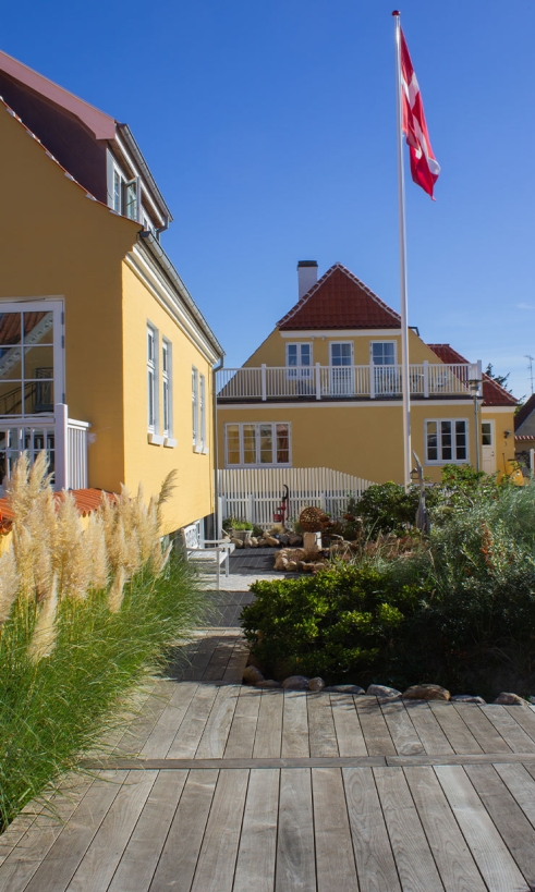 Midt i Skagens smukke og rå terræn ligger et gult, ældre byhus, der fungerer som feriebolig. Familien, der ejer boligen, har valgt at lade inde og ude smelte sammen ved hjælp af en specialdesignet træterrasse i Thermo Ask.