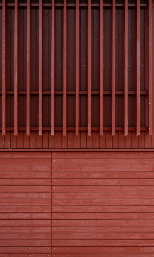 Den totalrenoverede bygning udstråler kvalitet i alle detaljer. Her er intet overladt til tilfældighederne, og det mærkes tydeligt, at bygherre ikke har gået på kompromis med materialevalget. Facaden er beklædt med Thermo Fyr og Thermo Ask profiler, der er brandtestet og overholder klasse 1 beklædning, de er ydermere behandlet med en dyb rød maling, der tilfører bygningen et både markant og raffineret udtryk. Farven sender en hilsen til, samt spiller elegant sammen med, godsets øvrige arkitektur og giver stedet en helt særlig atmosfære.