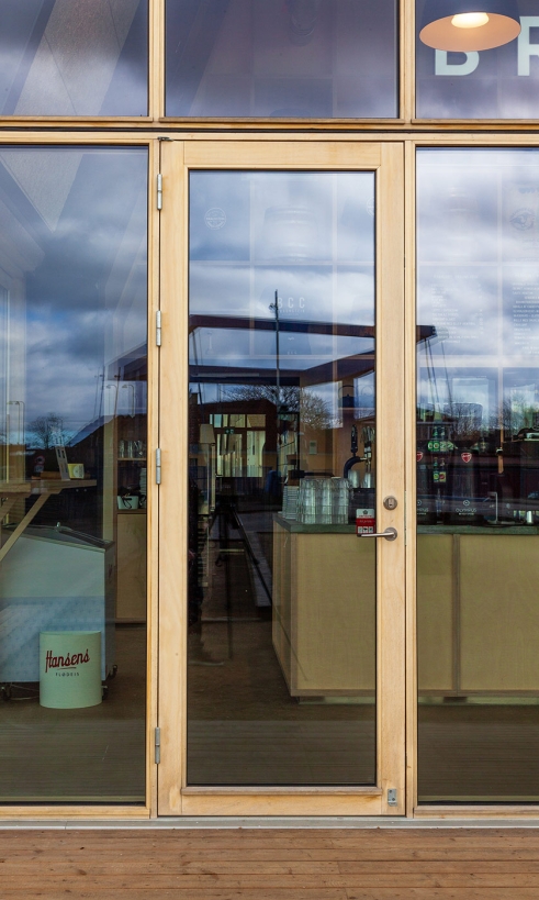 Keflico har leveret Accoya® til pakhusets vinduer, der er produceret hos Dana Vinduer. Det store, enestående vinduesparti på byggeriets gavl, kan, ligesom resten af byggeriet, skilles ad i moduler.