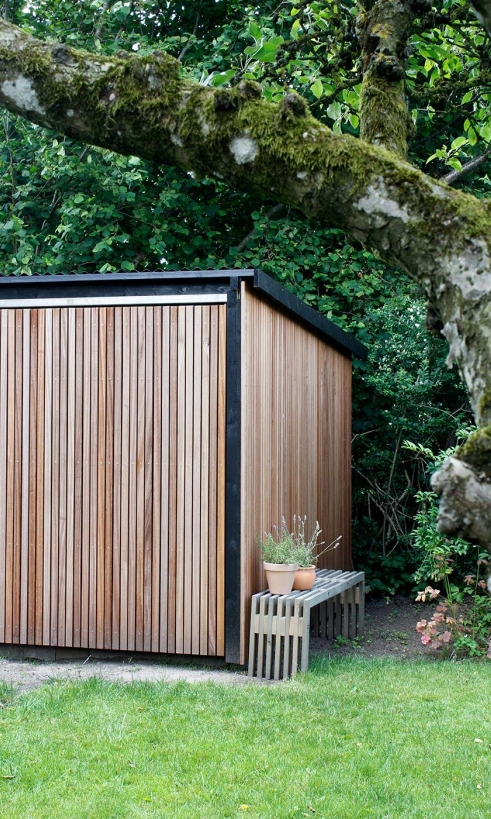 I en privat have i Nordjylland ligger der et fint bevis på, at et skur beklædt med træ kan fungere smukt som en integreret del af haven. Skuret smelter godt sammen med miljøet udendøre og er samtidig en æstetisk fornøjelse at kigge på i sig selv.