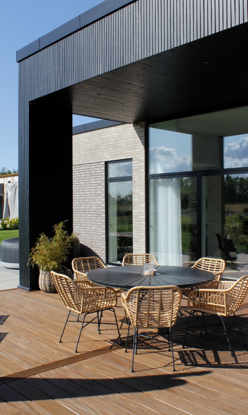 Her er der plads til at nyde aftensmaden med familien, solbade eller grille under overdækningen i alt slags vejr.