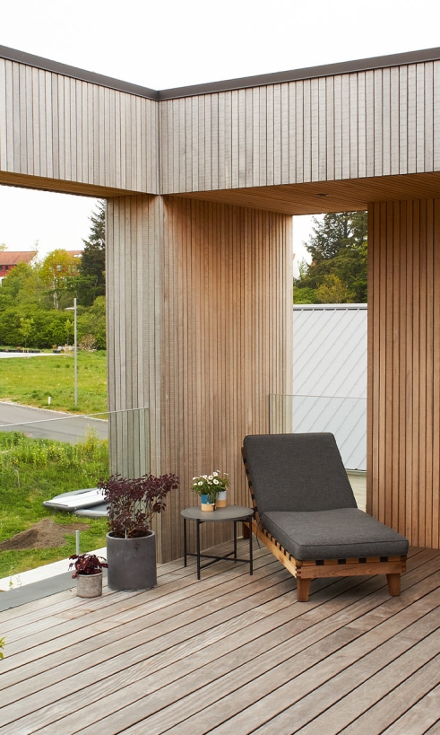 Resultatet er ikke til at tage fejl af. Et enestående byggeri, der imponerer med sine detaljer og gode designvalg. Og nå ja, så kan udsigten også lige nydes på en smuk terrasse i hårdttræssorten Sucupira.