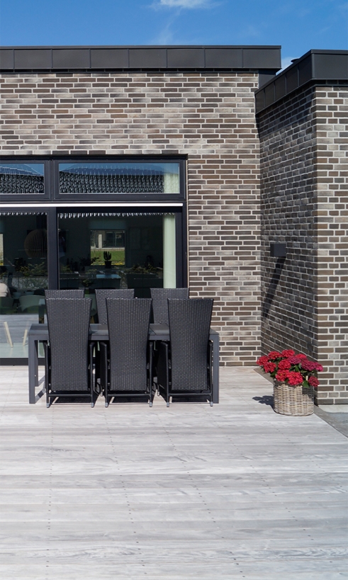For denne villa har terrassebrædderne fået lov til at patinere i virkelig smukke, grålige toner, hvor den stadig står skarpt med sin naturlige råstyrke og modstandsdygtighed.