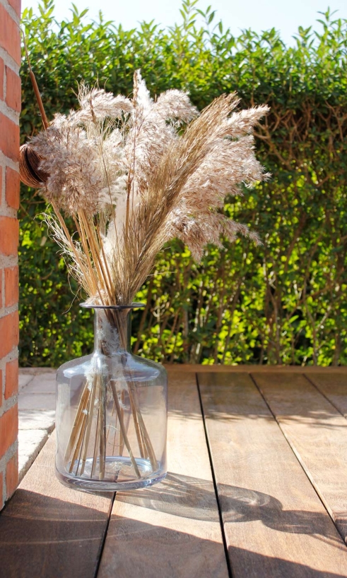 Brædderne er blevet olieret kort efter montage. Olien sørger for, at Sucupiratræet bevarer sin varme glød og giver terrassen de bedste forudsætninger mod vind og vejr. Terrassen er desuden proppet i skruesamlingerne. Det betyder også, at terrassen kan slibes og olieres på ny igen og igen.