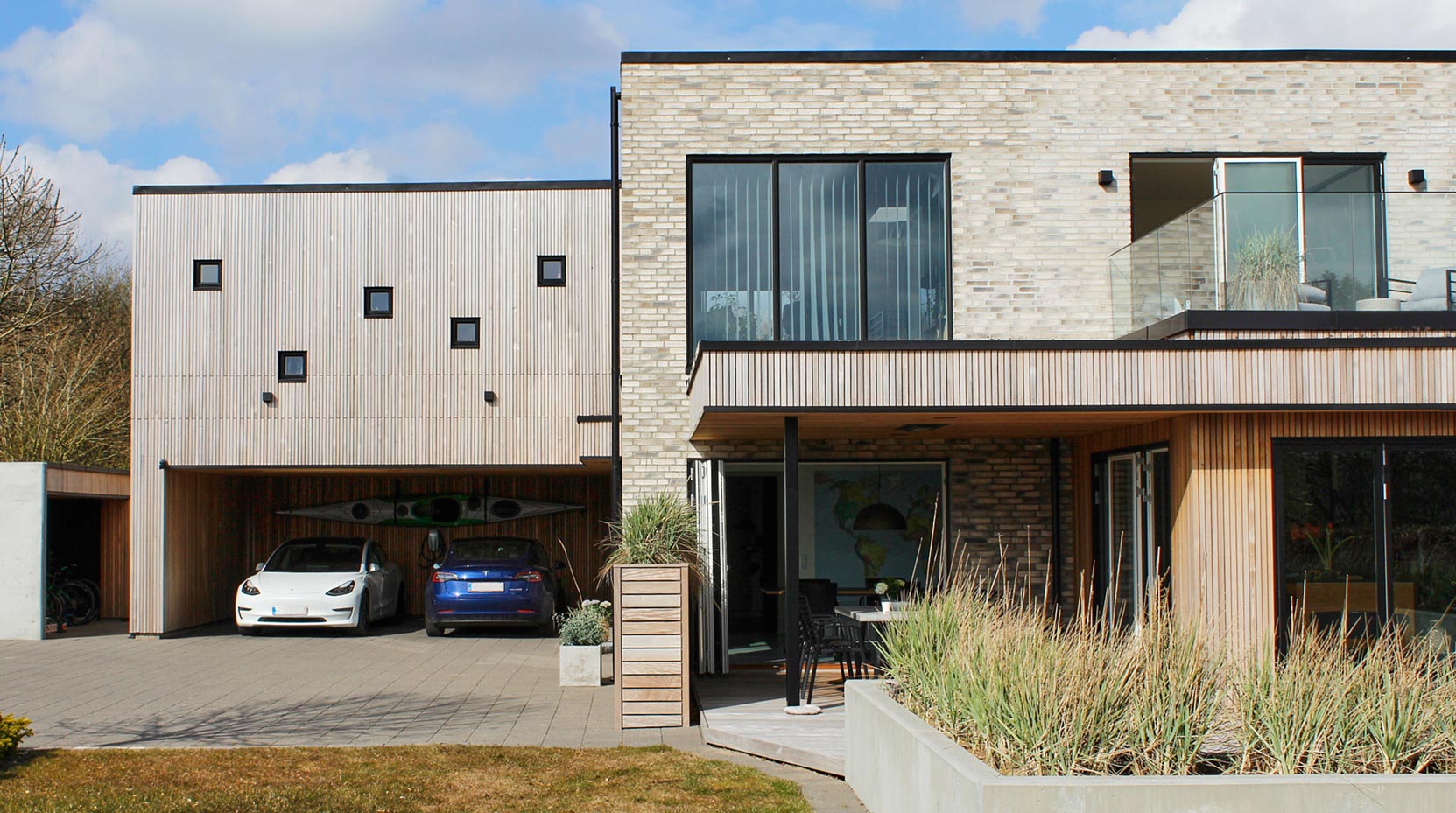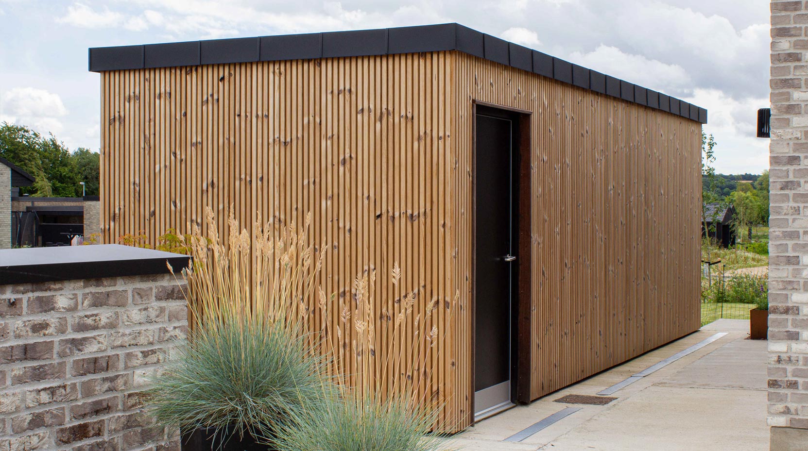 Der er flere, der vælger at komplimentere deres husbyggeri med et skur, carport eller anneks med beklædning i træ for at give en kontrast til f.eks. murstenshuset. Der findes lige så mange muligheder her af forskellige produkter i træ som hvis det var facadebeklædning af et hus.